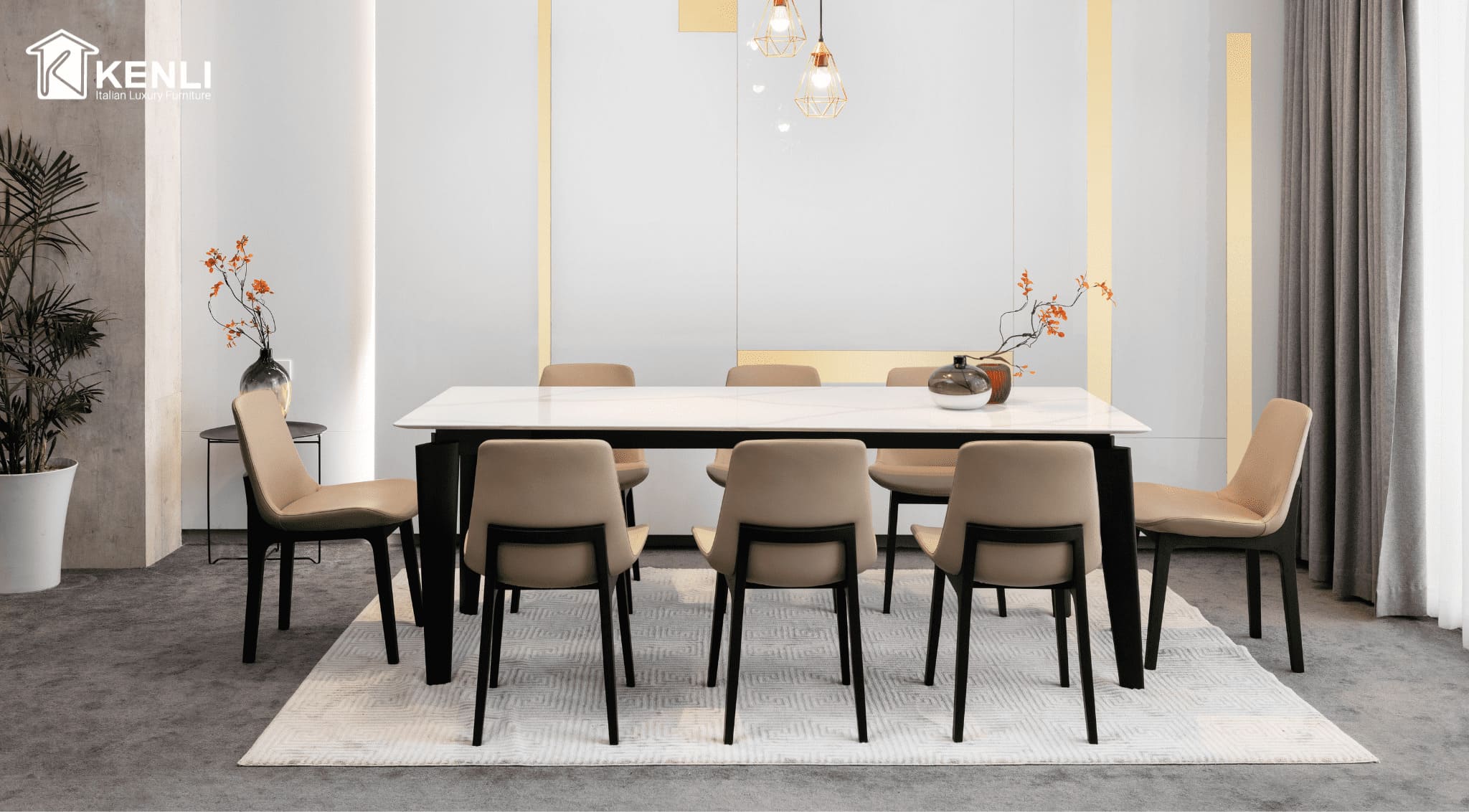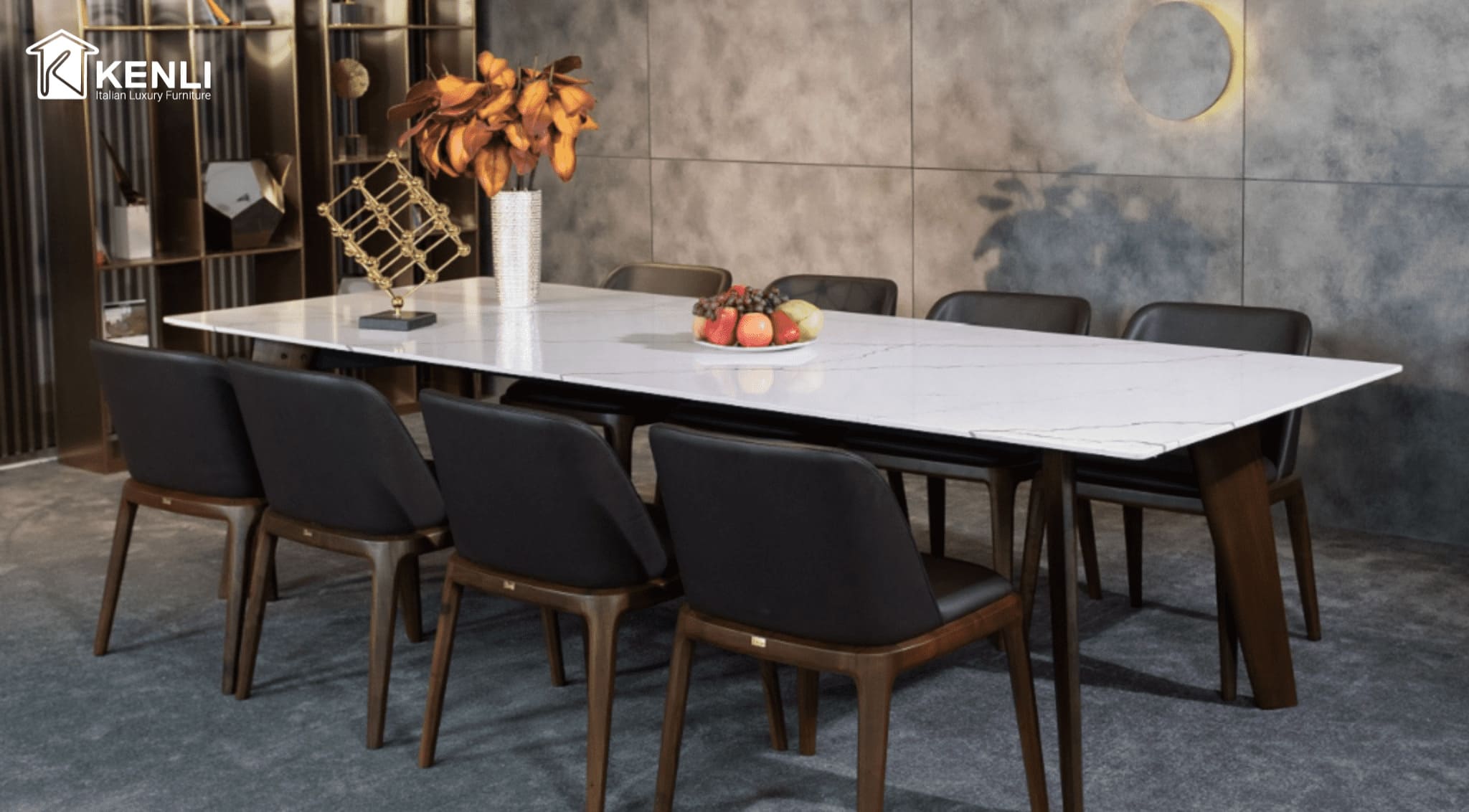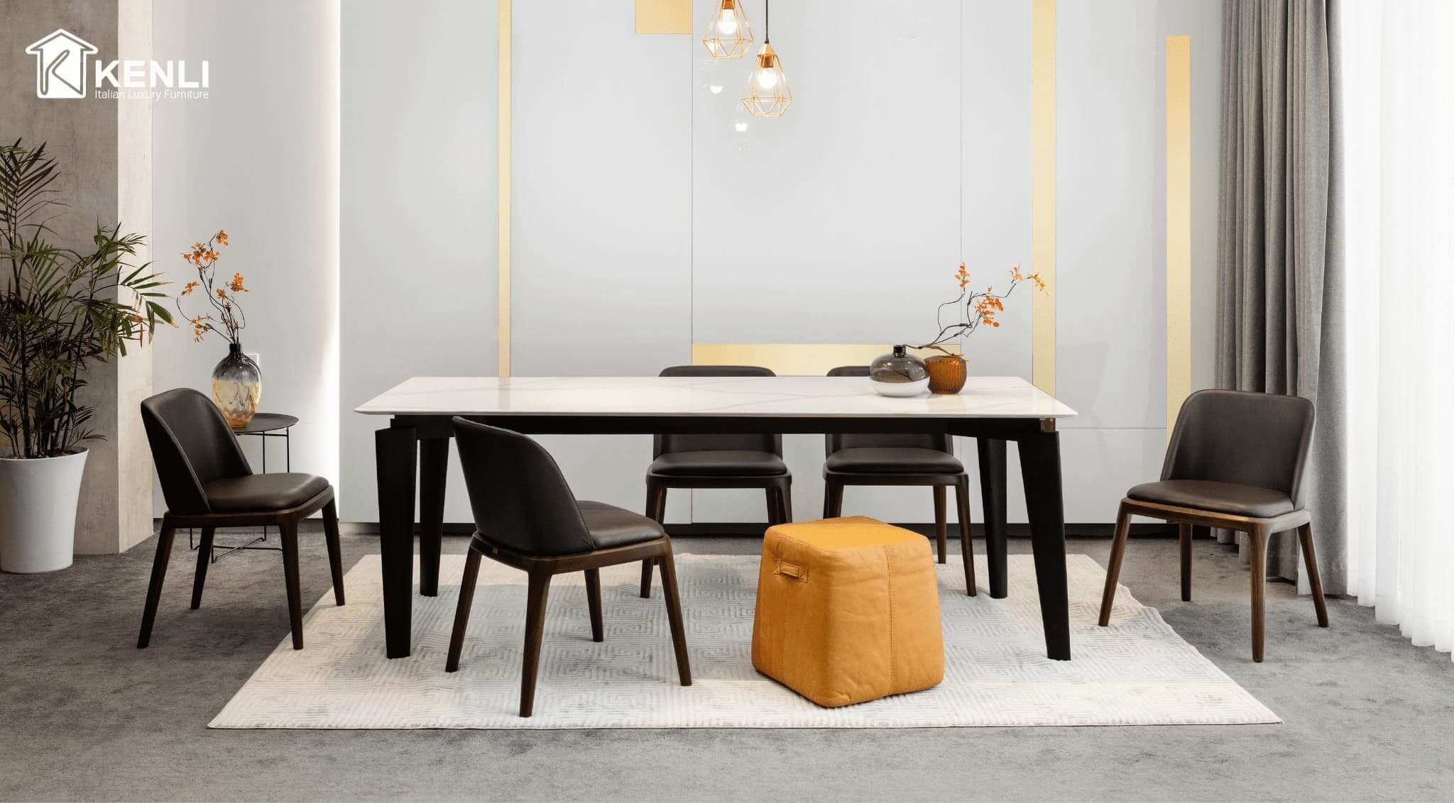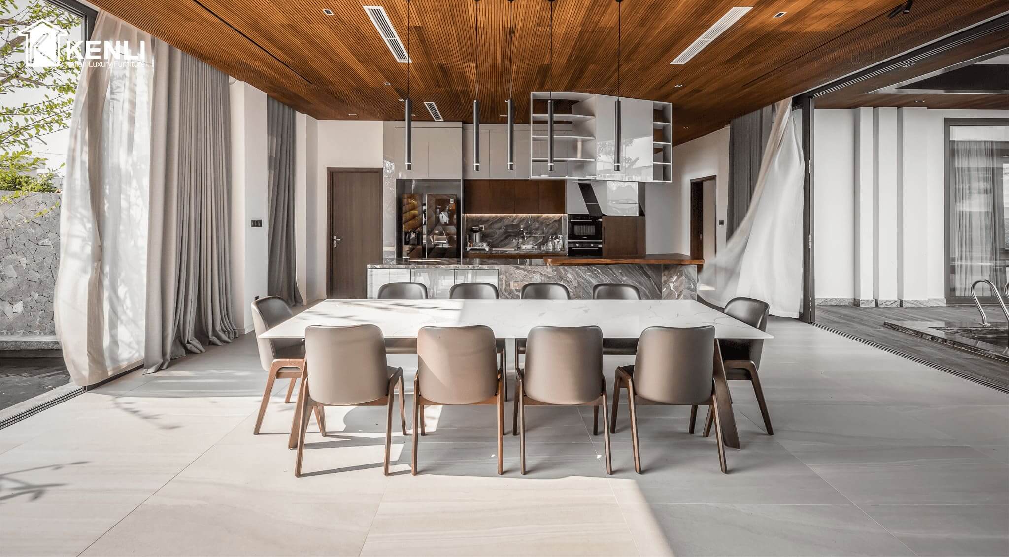 Nội thất Kenli luôn là đơn vị tiên phong cung cấp những mẫu bàn ghế ăn có thiết kế độc đáo, khẩu độ phù hợp với dáng vóc người châu Á ra thị trường. Sản phẩm sử dụng chất liệu gỗ óc chó Mỹ, gỗ sồi Nga và gỗ Teak nhập khẩu là những loại gỗ cao cấp nhất trong nội thất, kết hợp cùng mặt đá nhân tạo gốc thạch anh của thương hiệu đá Ý Santamargherita, mang đến vẻ đẹp hoàn mỹ của dòng sản phẩm dành cho giới thượng lưu.