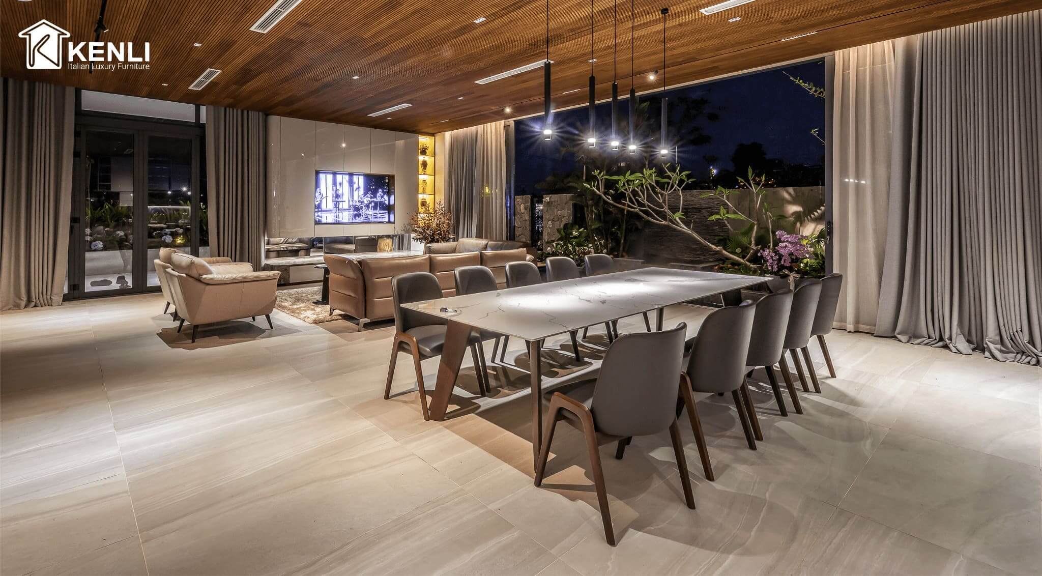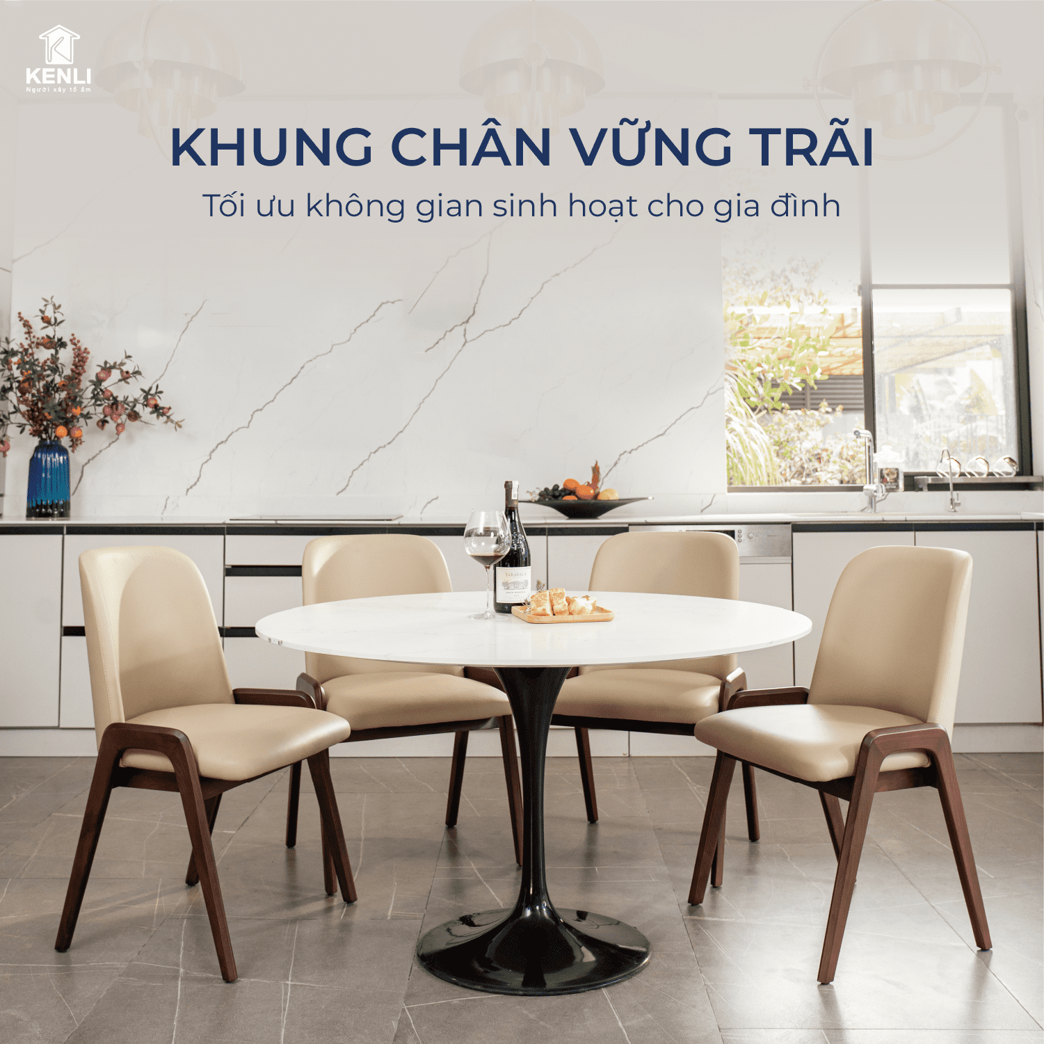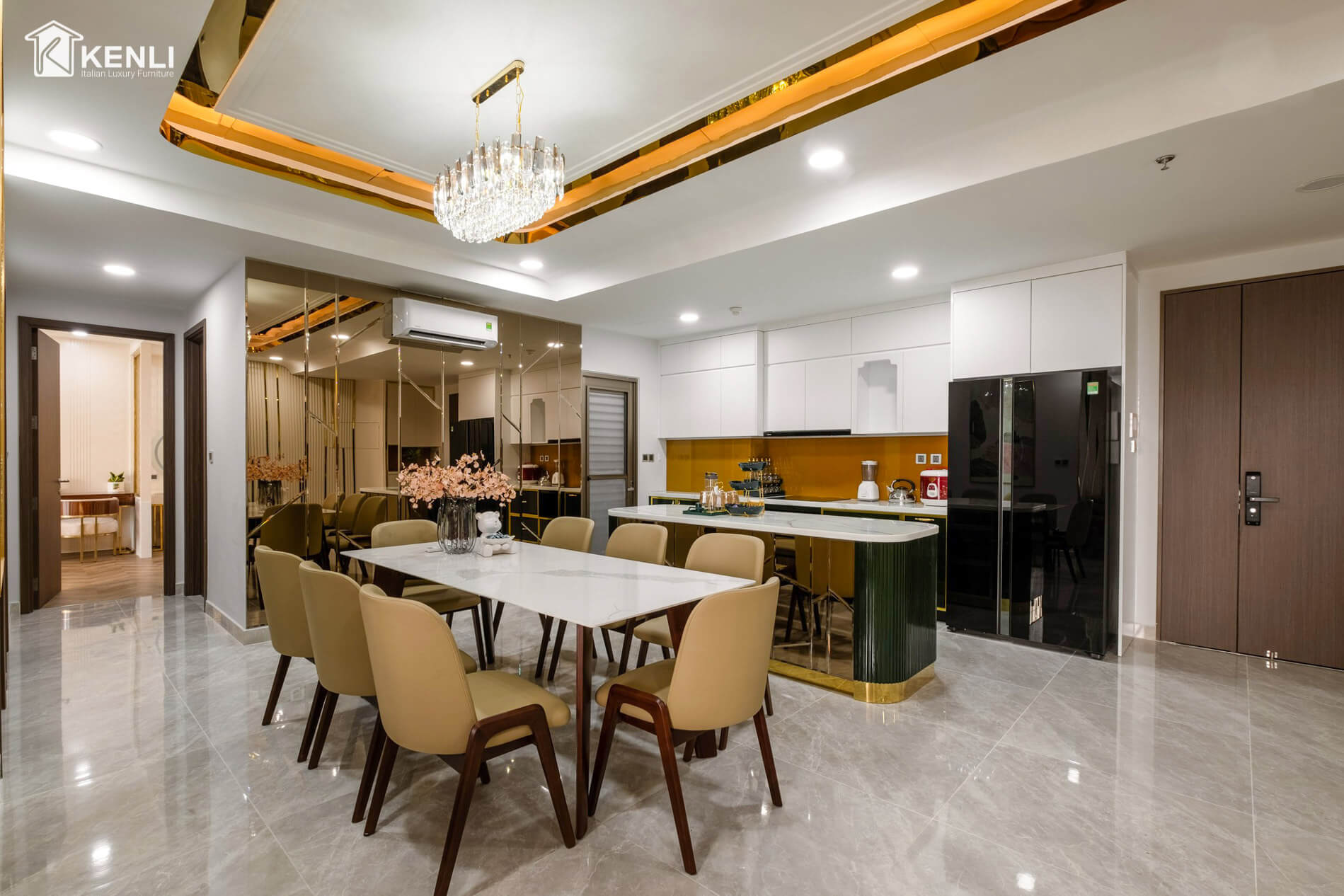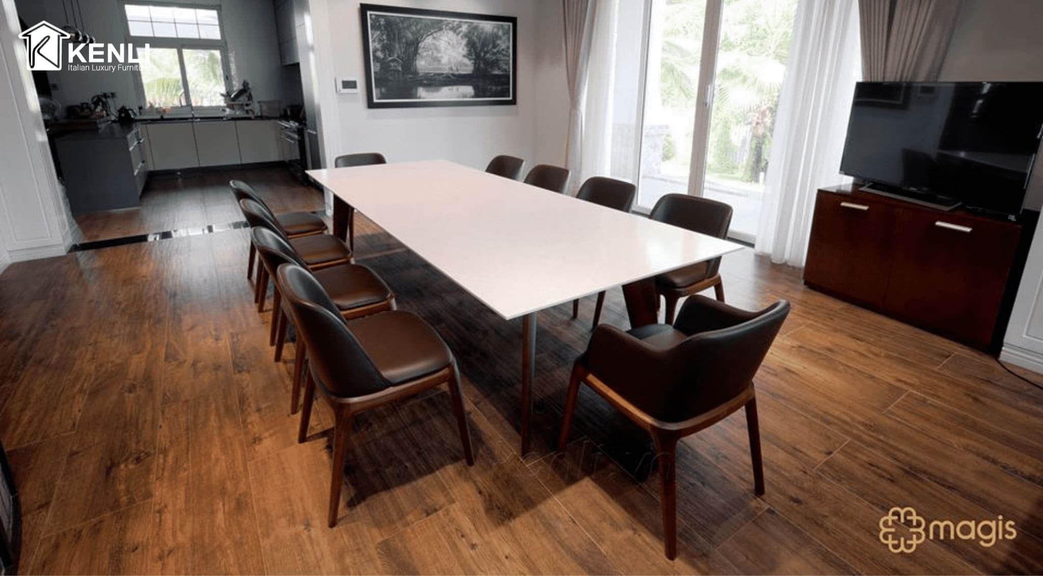 Nội thất Kenli luôn là đơn vị tiên phong cung cấp những mẫu bàn ghế ăn có thiết kế độc đáo, khẩu độ phù hợp với dáng vóc người châu Á ra thị trường. Sản phẩm sử dụng chất liệu gỗ óc chó Mỹ, gỗ sồi Nga và gỗ Teak nhập khẩu là những loại gỗ cao cấp nhất trong nội thất, kết hợp cùng mặt đá nhân tạo gốc thạch anh của thương hiệu đá Ý Santamargherita, mang đến vẻ đẹp hoàn mỹ của dòng sản phẩm dành cho giới thượng lưu.